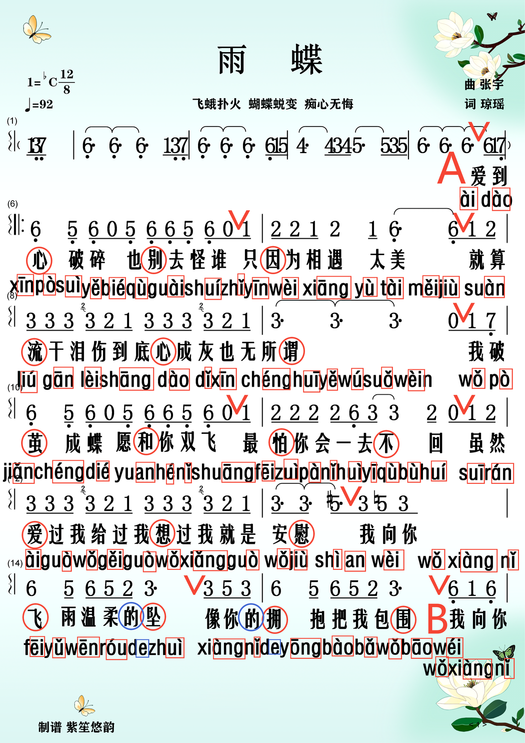 《雨蝶》歌曲演唱精讲,并配有原唱及简谱教唱mp3。