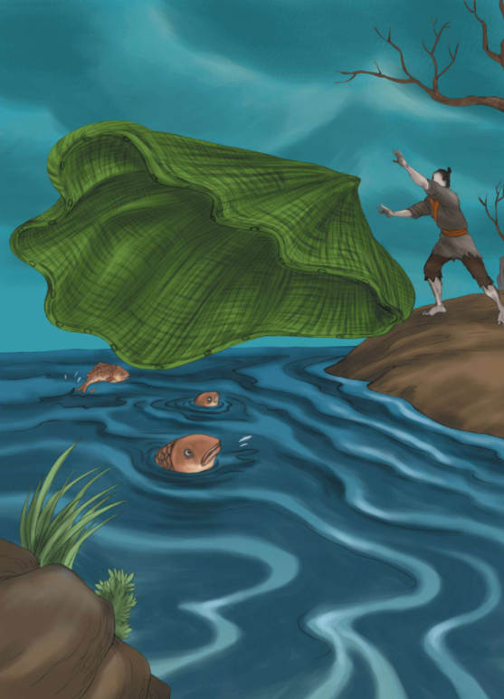 变成鱼的人仍然保持头脑清醒,但口不能言,离水不能活,遇网不能破,要让他亲眼看到,亲身体验到做鱼的劫难。