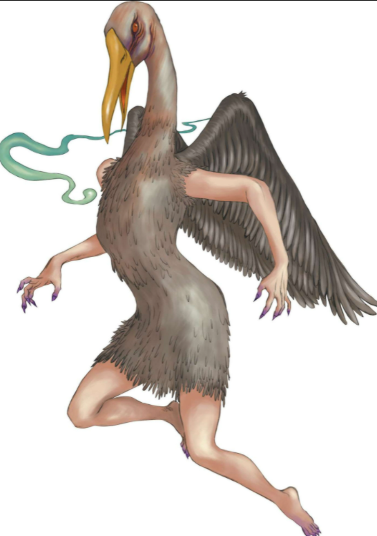 鹄(hú)(水鸟,形状像鹅,比鹅大,鸣声宏亮,善飞,吃植物、昆虫)首人身,身后生有一对鸟的翅膀,饮食与习性保持原鸟的规律;和兽妖修炼一样,路途有两种:一是修内丹,二是吸取人类的原阳。