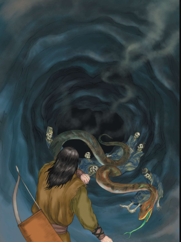 28. 半月以后,路过选仙台的人都闻到一股恶臭,起初没人在意,后来,臭气弥漫了整座大山,熏得附近人根本没法呼吸。有位猎人路过,感觉臭味像是腐烂的动物尸体发出来的,于是决定进山寻找。猎人寻着气味来源,最终爬到了选仙台旁的那座悬崖上,才找到恶臭是从石洞里传出来的。猎人小心地进入石洞里,只见一条大蛇死在洞中,尸体已经腐烂了。更可怕的是,山洞里到处是人的白骨,白骨上都套着道人穿的道袍。