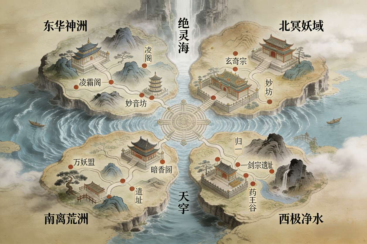 祖神开天,万族共存。后爆发“神陨之战”,涉及对世界本源的争夺,导致祖神彻底的陨落,天道固化,诸多强大的种族(如真龙、天凤)和修炼体系断绝。人族崛起,确立以灵气修炼为主流的体系。第一次“天道之争”爆发,一批认为“天道不仁,当以人情补之”这群人试图修正天道,但是失败了就会被抹杀,相关记载成为禁忌。“情念之道”被视为异端源头。近古时期(万年前)爆发第二次天道之争,即“窃天之战”。有绝世天才试图以禁术直接取代部分天道权柄,导致天穹裂隙产生,世界灵机开始缓慢泄露。战后,正统修真界加强了对“非正统”力量的清洗与控制,强调秩序与服从。-cv东门