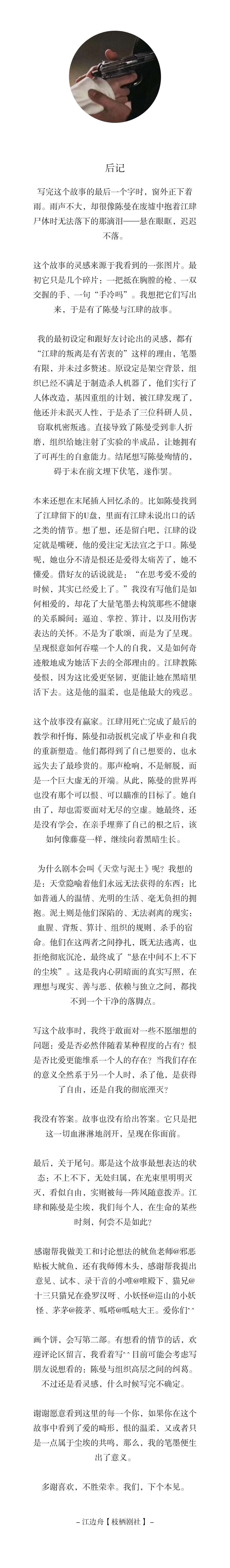 附上一张我徒弟@春渝舟 写的陈曼自白。好痛…