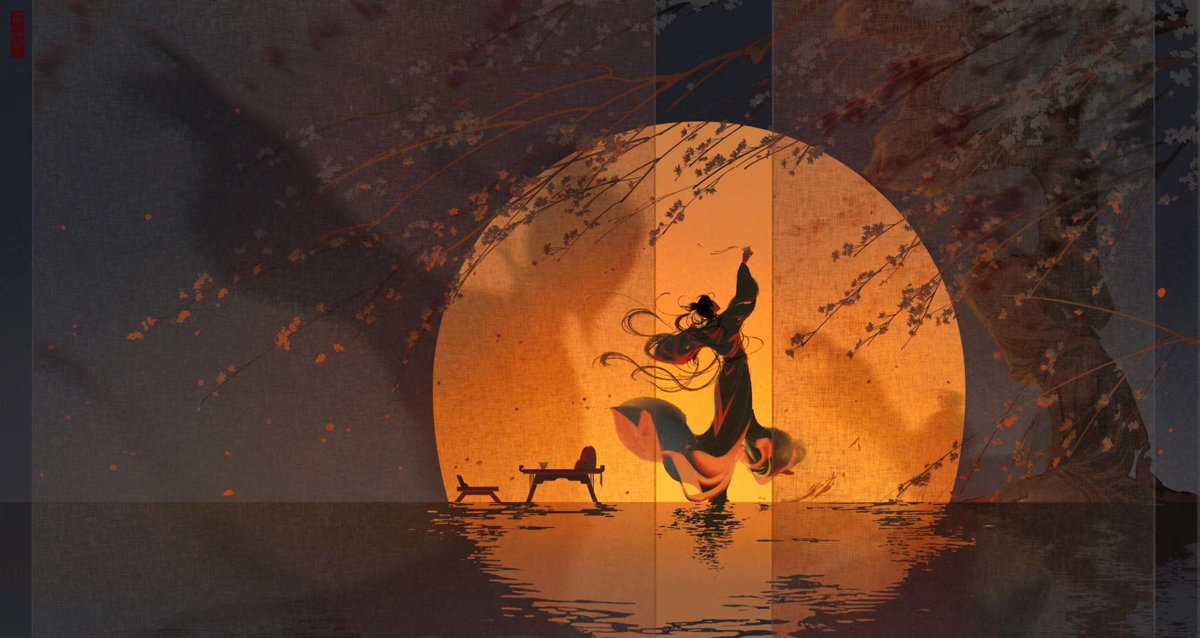 月夕江皱秋波