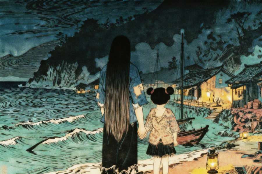 姐姐:听说……很久以前,大人们出海都会去那里祈求平安,每次都很灵验。可有一次,巨大的海浪袭击了村子,很多人躲进教堂里祈祷,希望风暴停下。