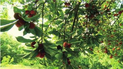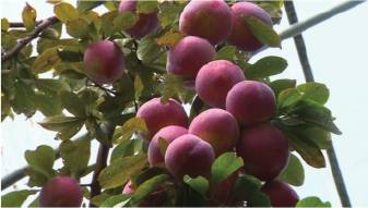 村民吴功顺说:“我们这一年四季都有水果,你看这个梨,皮薄、肉又厚,非常好吃。咬一口,水就掉下来了。”