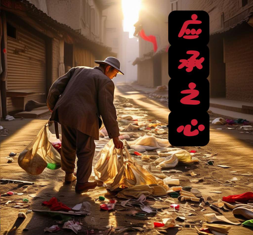 他背着沉甸甸的麻袋,穿行在西京的街道和巷弄之间,把每一个角落都仔细检查一遍,手中的竹夹一次次精准地锁定目标,将地上的废纸、瓶子一一捡起,放进他背后的麻袋。