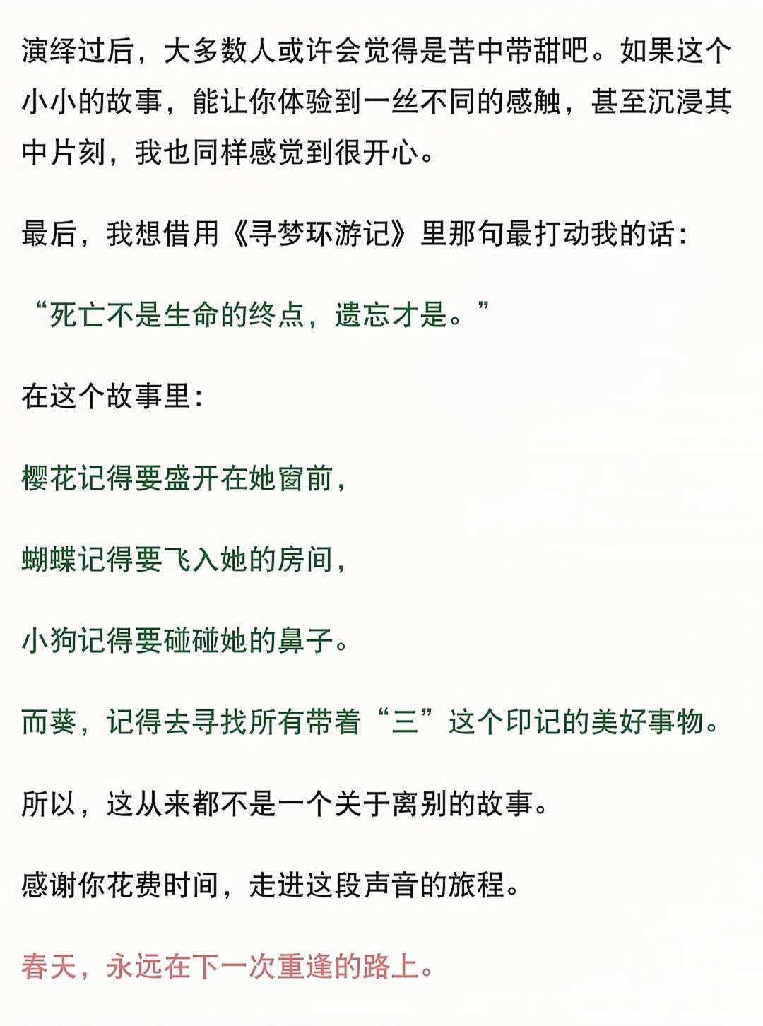 葵:(抹了一把眼泪,坚定)明年,我们一起去看樱花。