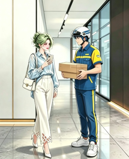 秦奋:(电话音)“我是快递。有您一个快递。大概 30 分钟后到。您这个是在韵天大厦 A 座 3T?”