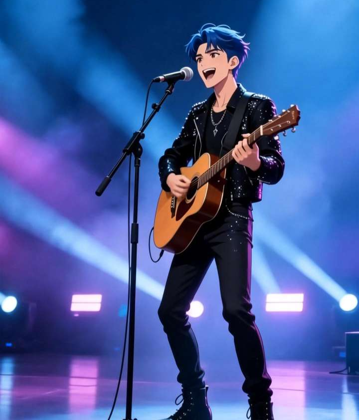 秦奋:(电台腔)六佰把新的琴弦拧紧,拨了几下,又调了一下,随意弹了一段 solo。然后,他抱着琴,在电脑上打开《弹琴吧》,浏览着新的吉他谱。他的目光被一个标题吸引住,“声动电台”。他点击鼠标打开谱子,看了一眼作者名字暗道:“脑补匠,嘿,这名字有意思!”六佰握住琴颈,看着谱子试弹了一下开头的前奏,觉得听起来挺不错。于是他打开了效果器和电子节拍器,带上监听耳机,一边点着头,一边又重来了一遍刚才的 Riff。突然,他耳机里传来了阵阵的欢呼声,而且欢呼的,仿佛是自己的名字。他抬头看了一眼电脑,看到的却是舞台下面无数双舞动的手,和一闪一闪的银光棒……