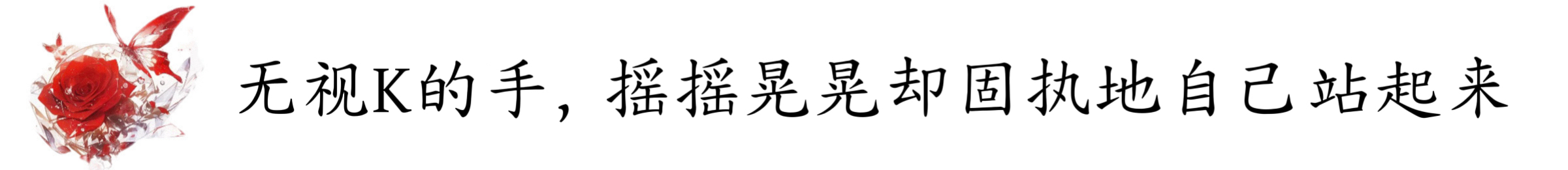 K:(笑)炭火?那就抱紧了…我的灰烬小姐…别松手天亮之前…让我们…再烧一会儿…把剩下的…都烧干净…