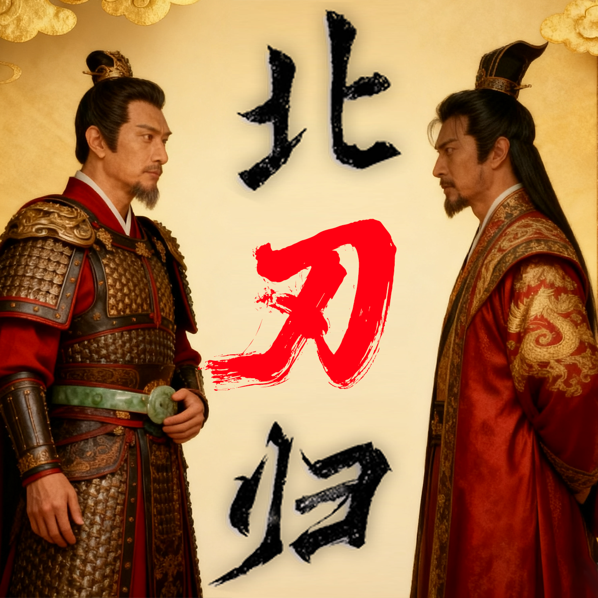 (他一步步走回新帝面前,脚下的战靴踩在金砖上,发出清脆而致命的声响。)