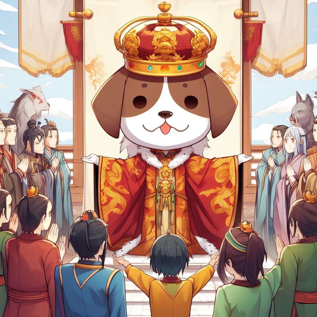 说书人:小明很惊慌,想找人求救,但是发现自己只能汪汪叫,而且周围的人都对他恭恭敬敬,称他为陛下。
