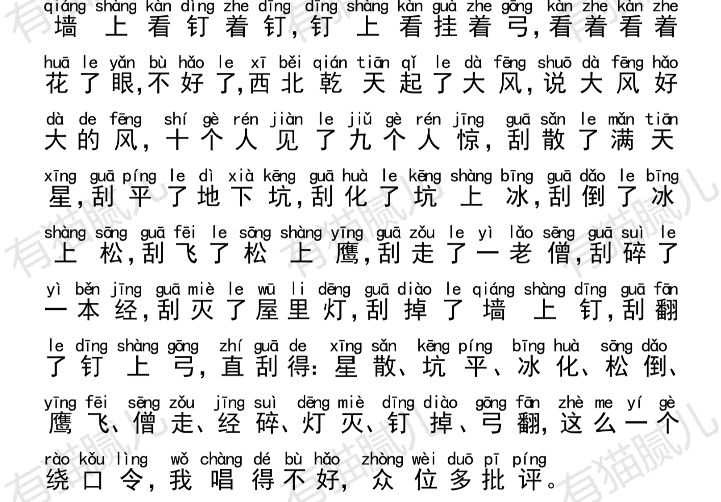 钉掉弓翻 ∥ 一段绕口令