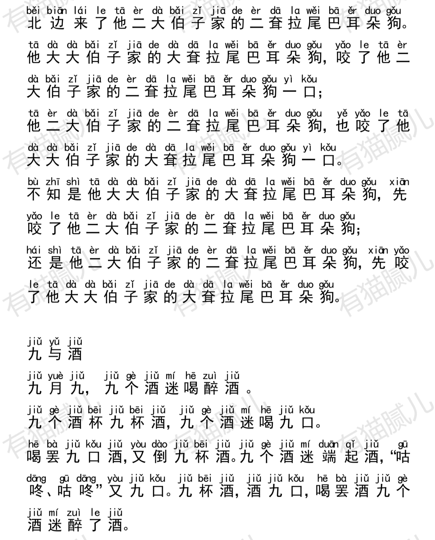 学了好了声了韵了辨了四了声,