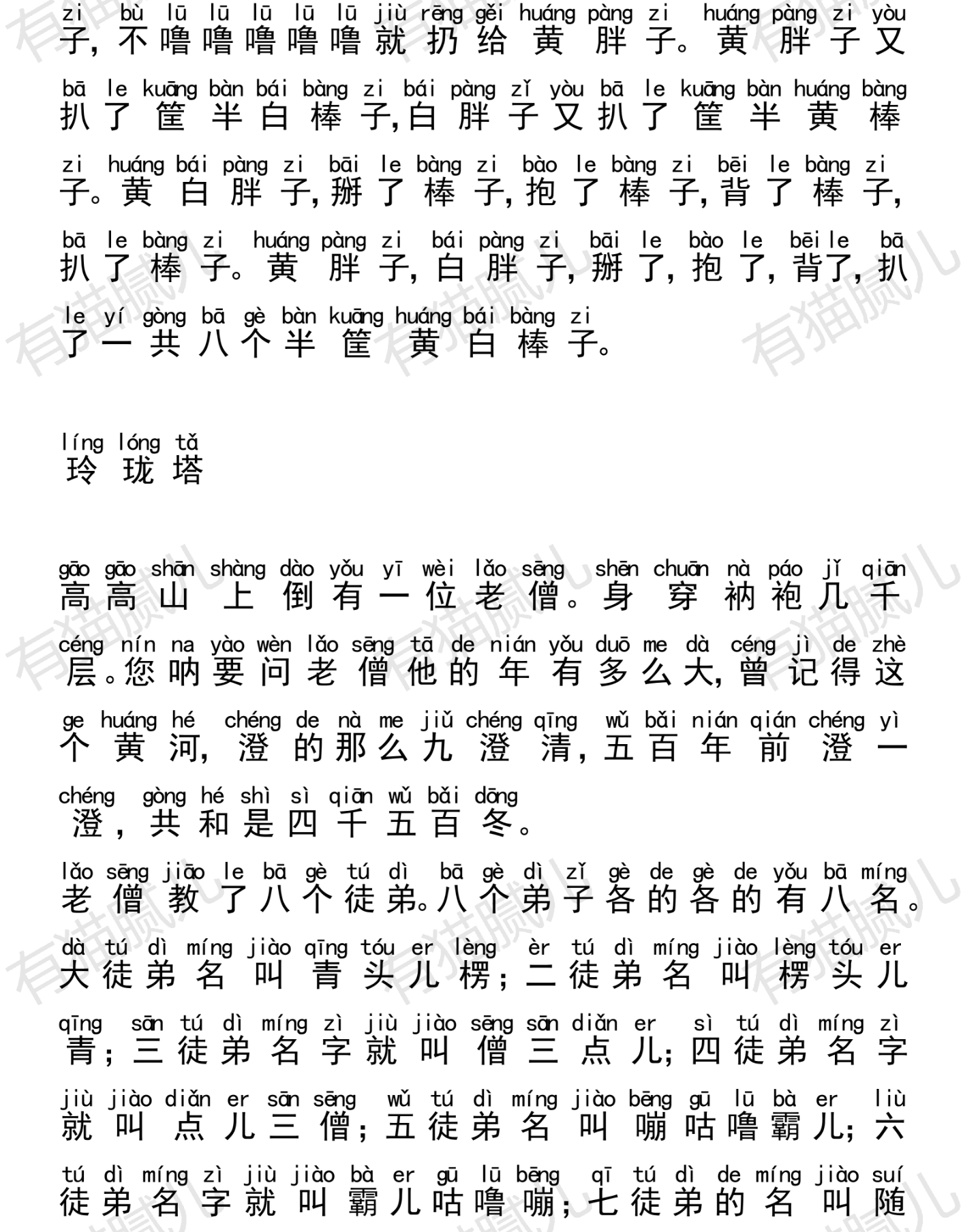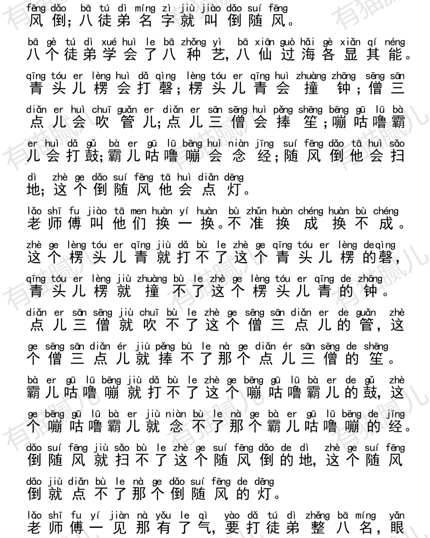 五徒弟名叫甭葫芦把儿 ∥ 六徒弟名叫把儿葫芦崩