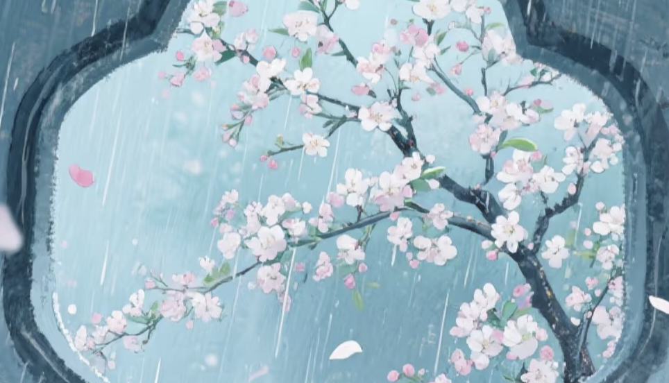 花时雨:(混响)(回忆)半月暄和留艳态,两时风雨免伤摧。