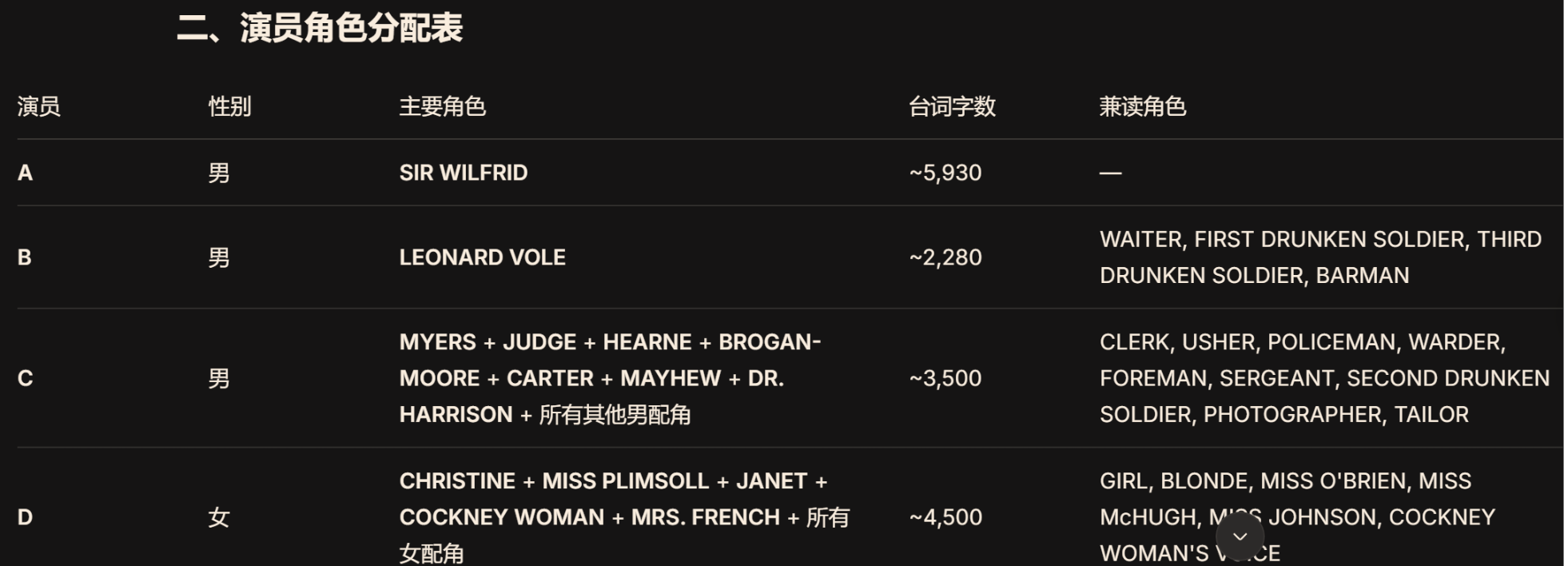 此本为电影全部完整内容,角色众多,为使得pia戏便捷,我将角色分配给四人完整,用颜色体现分配好的角色内容,演员B和D最好为B男D女,其他角色A和C自由分配。