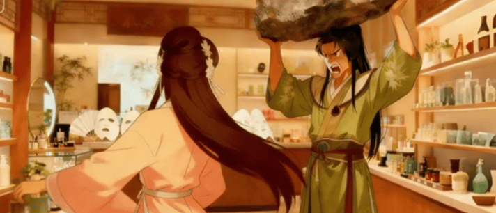 狐笾:(气势汹汹逼近,边走边撸袖子)你还敢提面皮!(指着自己沧桑的脸)瞅瞅!从花骨朵变成老“核桃”了