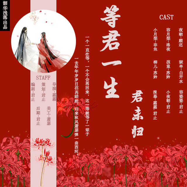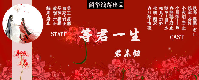 报幕:一个一直在等,一个不会再回来,这一等就等了一辈子,欢迎收听韶华浅落广播剧社原创剧情歌【等君一生,君未归】编剧-君止