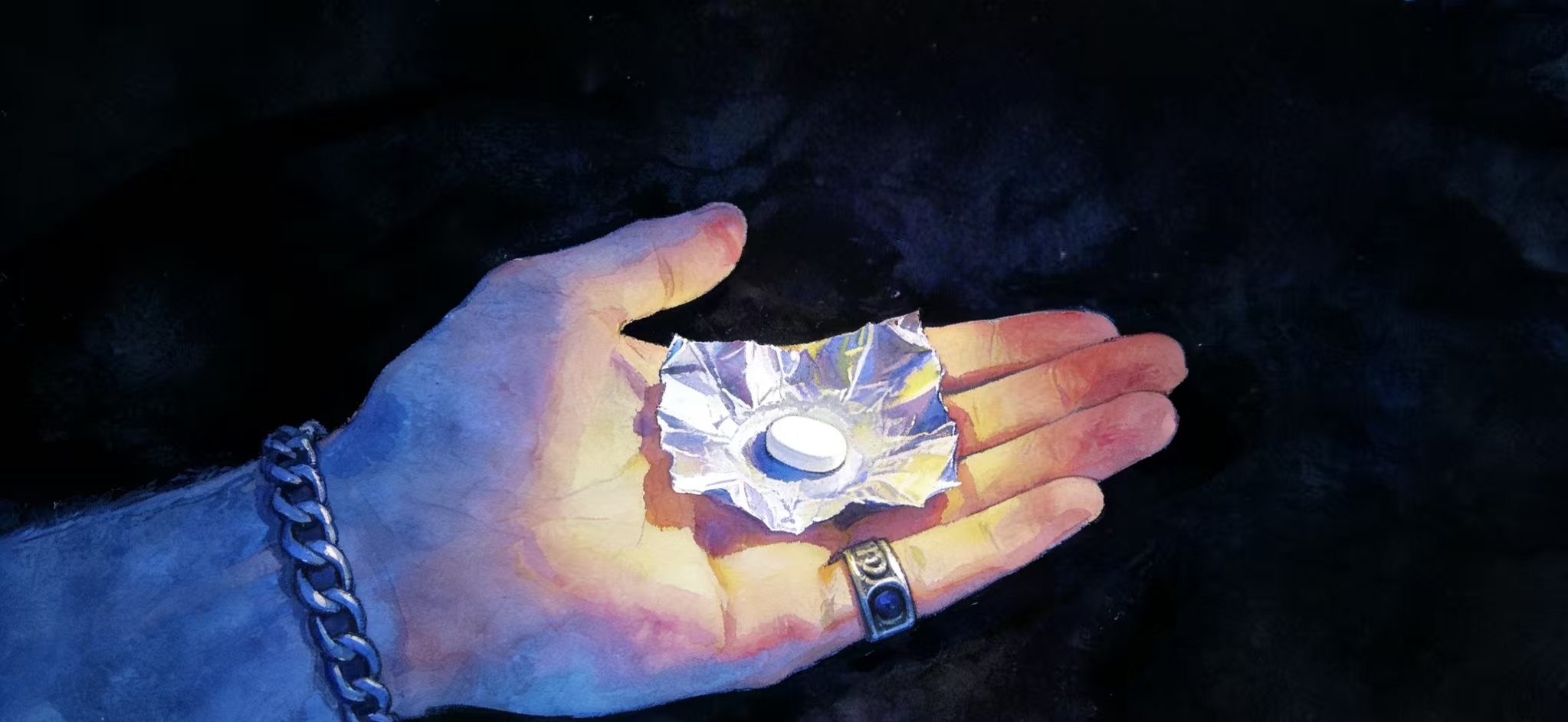 阿伦:跟我有关系。(压低声音)听我歌的时候,你们不是总说想要走进我的世界吗?(缓缓打开锡纸包)它能让你…真正的感受到我。