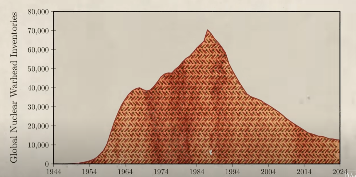 So no matter what your opponent does, your best option is always to defect. Now, if your opponent is also rational, they will reach the same conclusion and therefore also defect. As a result, when you both act rationally, you both end up in the suboptimal situation getting one coin each when you could have gotten three, instead. In the case of the US and Soviet Union, this led both countries to develop huge nuclear arsenals of tens of thousands of nuclear weapons each, more than enough to destroy each other many times over.