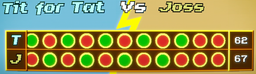 Another strategy was called Joss. It also starts by cooperating, but then it just copies what the other player did on the last move. Then around 10% of the time, Joss gets sneaky and defects.